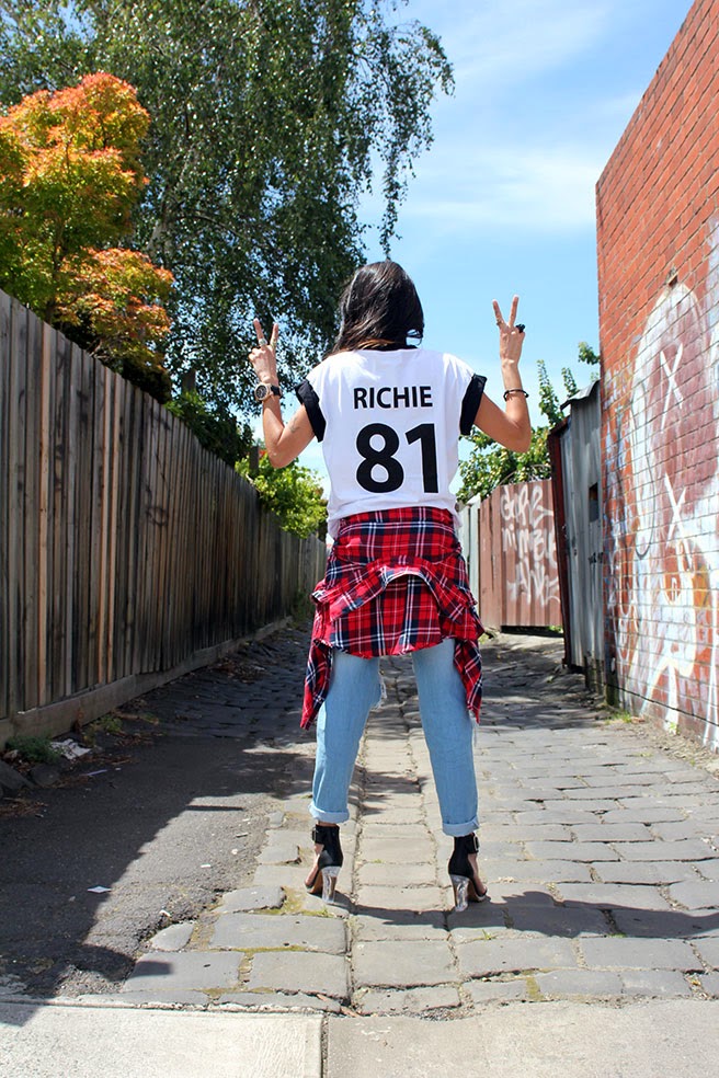 Wearing: MLM Ritchie Tee/ CO by Cotton on Ripped BF Jeans/ Jeffrey Campbell Heels/ Vintage Flannie/ Rayban Aviators